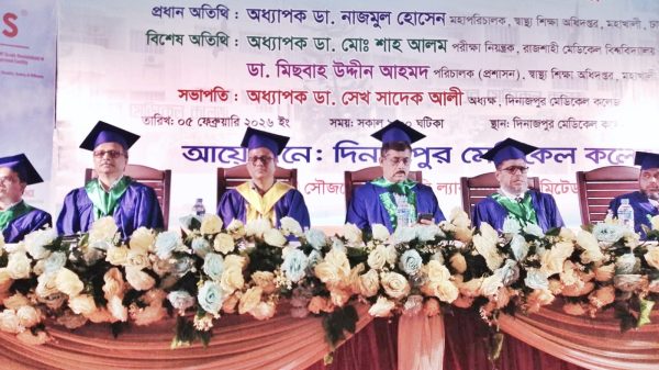 দিনাজপুর মেডিকেল কলেজে ইন্টার্ন চিকিৎসকদের বরণ ও সনদ প্রদান