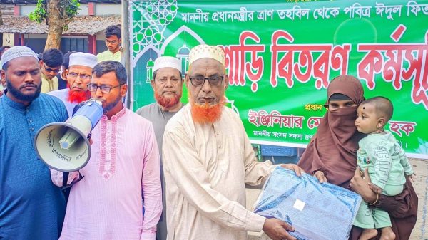 প্রধানমন্ত্রীর ত্রাণ ও শাড়ি পার্বতীপুরে দুস্থদের মাঝে বিতরণ