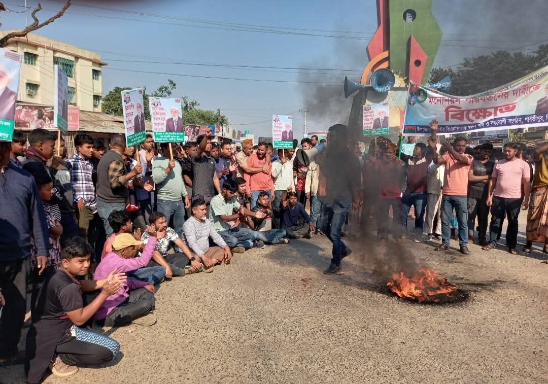 দিনাজপুর-৫ (পার্বতীপুর-ফুলবাড়ী) আসনে বিএনপি’র দলীয় প্রার্থী হিসেবে ব্যারিস্টার কামরুজ্জামানের নাম ঘোষণার প্রতিবাদ এবং প্রার্থী পরিবর্তনের দাবিতে দিনাজপুরের পার্বতীপুরে বিক্ষোভ প্রতিবাদে ও সড়ক পথ অবরোধ ।