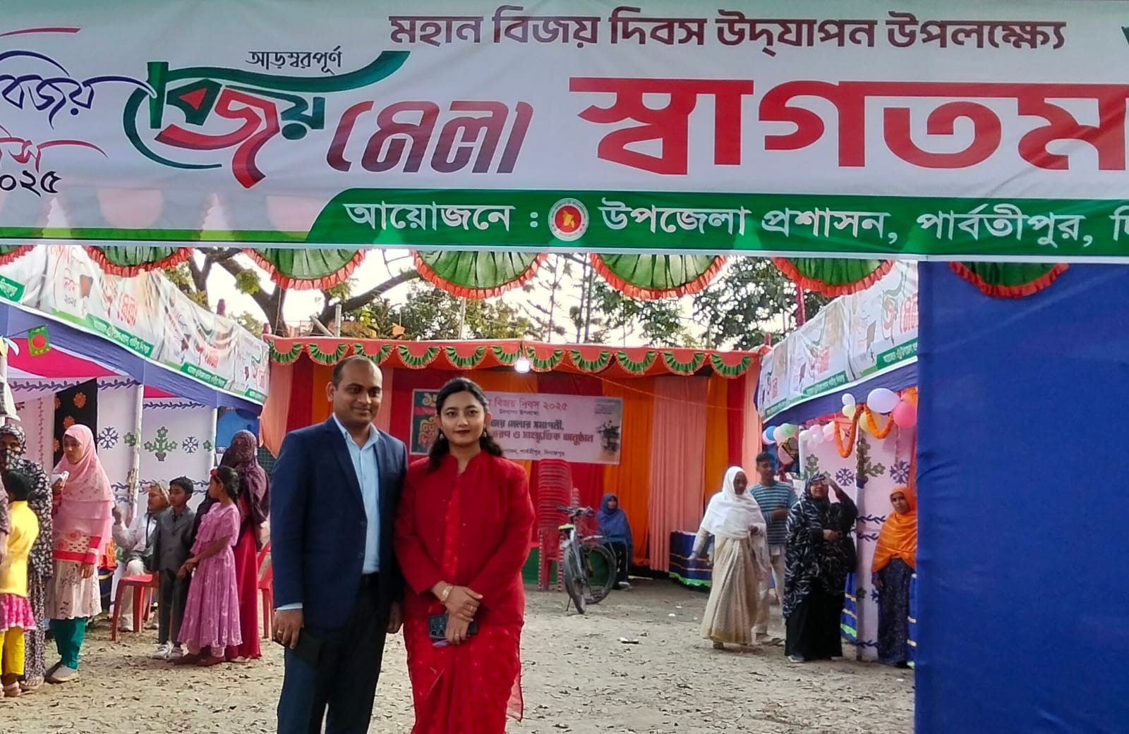দিনাজপুরের পার্বতীপুর উপজেলা প্রশাসনে আয়োজনে শুরু হয়েছে তিন দিনব্যাপী বিজয় মেলা। চলবে আগামী ১৮ ডিসেম্বর এ বিজয় মেলা। আজ মঙ্গলবার (১৬ ডিসেম্বর) বিকেল ৪টায় আনুষ্ঠানিকভাবে বিজয় মেলার ফিটা কেটে উদ্বোধন করেন পার্বতীপুর উপজেলা নির্বাহী অফিসার (ইউএনও) ও নির্বাহী ম্যাজিষ্ট্রেট মোঃ সাদ্দাম হোসেন। এসময় মেলার বিভিন্ন স্টল ঘুরে দেখেন উপজেলা নির্বাহী অফিসার সাদ্দাম হোসেন ও তার সহধর্মিণী, উপজেলা সহকারি কমিশনার (ভুমি)ও এক্সিকিউটিভ ম্যাজিষ্ট্রেট মাহমুদ হুসাইন রাজু ও উপজেলা সমাজসেবা অফিসার তাপস রায় প্রমুখ।