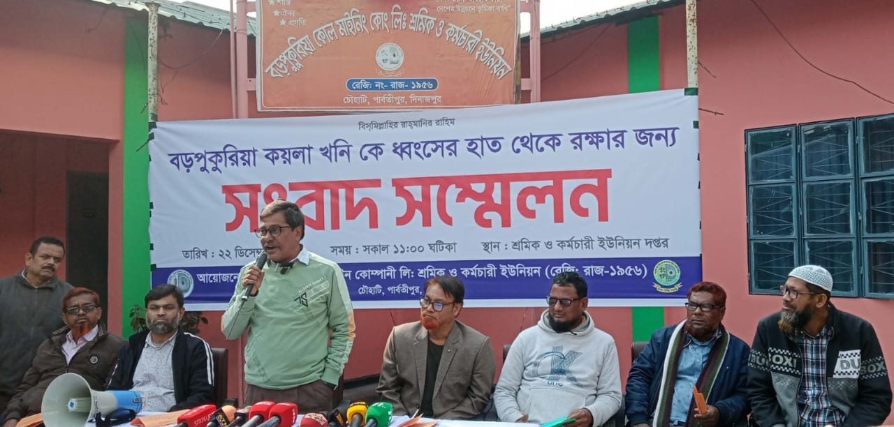 দেশের একমাত্র লাভজনক দিনাজপুরের পার্বতীপুরে অবস্থিত বড়পুকুরিয়া কয়লা খনি ধ্বংসের হাত থেকে রক্ষার জন্য খোলাবাজারে কয়লা বিক্রির দাবীতে বড়পুকুরিয়া কয়লা খনি শ্রমিক ও কর্মচারী ইউনিয়ন সংবাদ সম্মেলন করেছে।