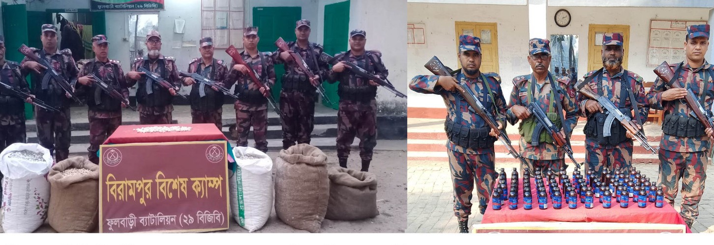 গত মঙ্গলবার আনুমানিক বিলেক ৫টায় গোপন সংবাদের ভিত্তিতে নির্বাহী ম্যাজিস্ট্রেট নাজিয়া নওরীন, সহকারী কমিশনার (ভূমি), বিরামপুর এর নেতৃত্বে ফুলবাড়ী ব্যাটালিয়ন (২৯ বিজিবি) এর অধীনস্থ বিরামপুর বিশেষ ক্যাম্প কর্তৃক ক্যাম্প হতে ০২ কিঃ মিঃ দক্ষিণ-পূর্ব দিকে পালপাড়া নামক এলাকায় একটি টাস্কফোর্স অভিযান পরিচালনা করেন।