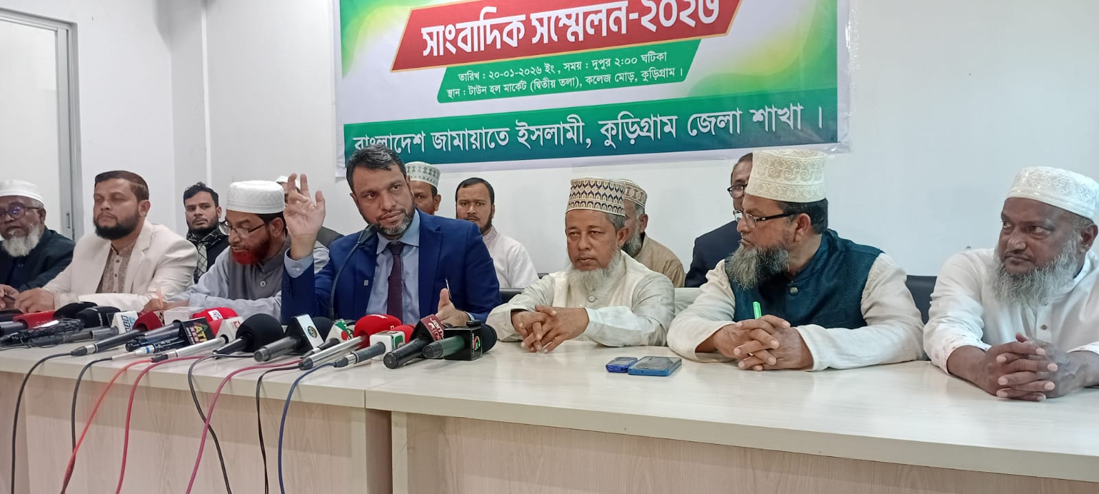 কুড়িগ্রাম থেকে মোস্তাফিজুর রহমান : ২০ জানুয়ারী ২০২৬, সুষ্ঠু নিরপেক্ষ গ্রহণযোগ্য নির্বাচন করতে সাংবাদিক ও প্রশাসনের আন্তরিক সহযোগিতা চাইলেন- কুড়িগ্রাম-৩ উলিপুর আসনের সংসদ সদস্য প্রার্থী ব্যারিস্টার মাহবুবুল আলম সালেহী। চলমান প্রেক্ষাপটের উপর নির্ভর করে কুড়িগ্রাম জেলা জামায়াতের উদ্যোগে অনুষ্ঠিত সাংবাদিক সম্মেলন তিনি এ আহবান জানিয়েছেন। এতে জেলা আমীর অধ্যাপক আজিজুর রহমান সরকার স্বপনের সভাপতিত্বে ব্যারিস্টার মাহবুবুল আলম সালেহী আরও বলেন- আমার উপর জুলুম করা হয়েছে তারপর আবার সময় ক্ষেপণ করে আমার নির্বাচনী এলাকাসহ দেশের জনমনে বিভ্রান্তি ছড়ানো হয়েছে। জনমনে বিভ্রান্তি ছড়ায় এমন সংবাদ পরিবেশন ও প্রকাশ না করার জন্য সাংবাদিকদের প্রতি উদার্ত আহবান জানিয়ে ব্যারিস্টার মাহবুবুল আলম সালেহী আরও বলেন, আমরা সকলে মিলে গড়ব দেশ দুর্নীতি হবে নিরুদ্দেশ।