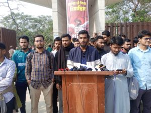 সংবাদ সম্মেলনে ছাত্র সংসদ প্রসঙ্গে উপাচার্যের অনগ্রসরতার অভিযোগ তুলে অর্থনীতি বিভাগের শিক্ষার্থী  শিবির নেতা মেহেদি হাসান বলেন, উপাচার্য একটি নির্দিষ্ট গোষ্ঠীর ইচ্ছাকে গুরুত্ব দিয়ে সাধারণ শিক্ষার্থীদের ন্যায্য অধিকার উপেক্ষা করেছেন। তিনি কৌশলগতভাবে সময় ক্ষেপণ করে জাতীয় নির্বাচনকে সামনে রেখে ছাত্র সংসদ নির্বাচন এড়িয়ে গেছেন। দীর্ঘ আন্দোলনের পরও ছাত্র সংসদ না পাওয়ায় শিক্ষার্থীদের মধ্যে চরম হতাশা তৈরি হয়েছে বলে দাবি করেন তিনি।