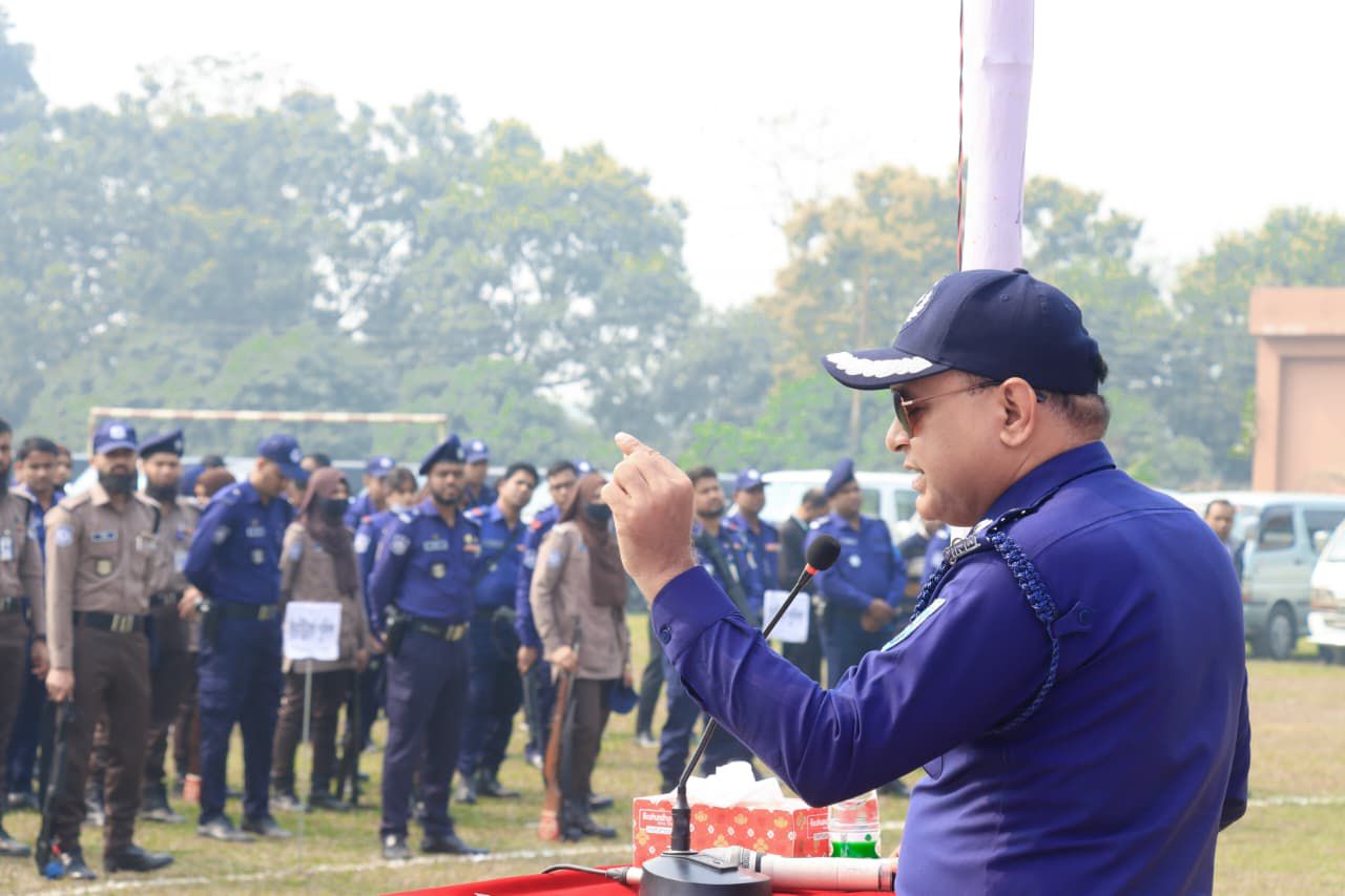 কুড়িগ্রাম জেলায় অবাধ, সুষ্ঠু ও নিরপেক্ষ নির্বাচন করার প্রত্যয়ে আসন্ন ত্রয়োদশ জাতীয় সংসদ নির্বাচন ও গণভোট-২০২৬, উপলক্ষ্যে ১০ ফেব্রুয়ারী সকাল ১০ ঘটিকায় কুড়িগ্রাম পুলিশ লাইন্স মাঠে কুড়িগ্রাম জেলায় নির্বাচনী নিরাপত্তায় নিয়োজিত পুলিশ সদস্যদের ব্রিফিং প্রদান করেন কুড়িগ্রাম জেলার পুলিশ সুপার জনাব খন্দকার ফজলে রাব্বি, পিপিএম।