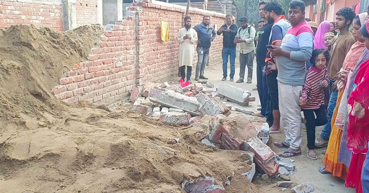 একপর্যায়ে মাটির চাপ সহ্য করতে না পেরে প্রাচীরটি হঠাৎ ভেঙে পড়ে। এ সময় প্রাচীরের পাশে বসে থাকা পাঁচজন নারী দেয়ালচাপা পড়েন।