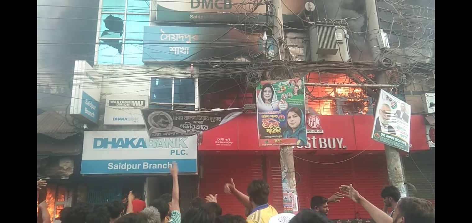 আগুনের খবর পেয়ে সৈয়দপুর, পার্বতীপুর ও সৈয়দপুর সেনানিবাসের দমকল বাহিনীর তিনটি ইউনিট প্রায় আড়াই ঘন্টার আপ্রাণ চেষ্টা চালিয়ে আগুন নিয়ন্ত্রণে আনে। একটি তুলা দোকানের গোডাউন থেকে সূত্রপাত হয়। মুহূর্তে আগুনের লেলিহান শিখা চারিদিকে ছড়িয়ে পড়ে। তুলা গোডাউনের পাশে থাকা ঢাকা ব্যাংকের সৈয়দপুর শাখায় আগুনে পুড়ে যায়। এতে ব্যাংকের ভোল্ট, কম্পিউটার সরঞ্জাম, আসবাবপত্রসহ মূল্যবান নথিপত্র পুড়ে গেছে বলে ব্যাংকের একটি সূত্র জানায়।