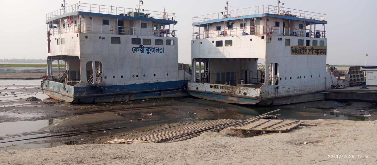 এদিকে এ রুটে নিয়োজিত দুটি ফেরি ‘কদম’ ও ‘কুঞ্জলতা’- নদের ড্রেজিং না হওয়ায় বালুচরে আটকে রয়েছে। একসময় যে ফেরি ছিল মানুষের আশার বাহন, আজ তা নিঃশব্দে ক্ষয়ে যাচ্ছে রোদ-বৃষ্টি-ঝড়ে। সংশ্লিষ্টদের আশঙ্কা, দীর্ঘদিন এভাবে পড়ে থাকলে সরকারের কোটি টাকার সম্পদ নষ্ট হয়ে যেতে পারে।