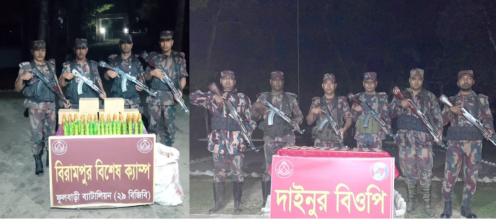 গত ২৫ ও ২৬ মার্চ ২০২৬ তারিখ ফুলবাড়ী ব্যাটালিয়ন (২৯ বিজিবি) এর অধীনস্থ বিরামপুর বিশেষ ক্যাম্প কর্তৃক পৃথক পৃথক ০২টি চোরাচালান প্রতিরোধ অভিযান পরিচালনা করে মালিকবিহীন ৬৬৪ বোতল বাংলাদেশী যৌন উত্তেজক সিরাপ আটক করতে সক্ষম হয়। মালিকবিহীন আটককৃত চোরাচালান মালামালের সিজার মূল্য ৯৯,৬০০/- (নিরানব্বাই হাজার ছয়শত) টাকা।