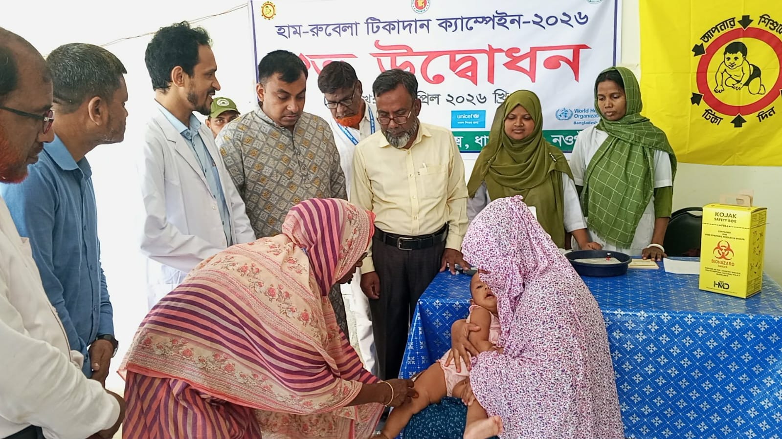 মাসুদ সরকার, ধামইরহাট (নওগাঁ) প্রতিনিধিঃ নওগাঁর ধামইরহাটে হাম-রুবেলা টিকাদান ক্যাম্পেইনের উদ্বোধন করা হয়েছে। উপজেলা স্বাস্থ্য কমপ্লেক্সের আয়োজনে ২০ এপ্রিল সোমবার সকাল ১০ টায় উপজেলা স্বাস্থ্য কমপ্লেক্স কেন্দ্রে টিকাদান কার্যক্রমের উদ্বোধন করেন উপজেলা নির্বাহী কর্মকর্তা প্রশান্ত চক্রবর্তী এবং স্বাস্থ্য ও পরিবার পরিকল্পনা কর্মকর্তা আশীষ কুমার সরকার। এ সময় উপস্থিত ছিলেন এমটি- ইপিআই ছারোয়ার হোসেন ও হাসপাতালের অন্যান্য স্টাফ বৃন্দ। জানা গেছে ২৪ এপ্রিল থেকে ১০ মে-২০২৬ পর্যন্ত ১৫ হাজার ১৭১ জন শিশুকে ১টি স্থায়ী কেন্দ্র ও ২৪০ টি আউট বিট কেন্দ্রে টিকা প্রদান করা হবে। ২৫ জন টিকাদান কর্মী ৫০ জন স্বেচ্ছাসেবী এবং ২৪ জন সুপারভাইজার টিকাদান কাজে নিয়োজিত আছেন। ৬ মাস থেকে ৫৯ মাস বয়স পর্যন্ত প্রত্যেক শিশুকে হাম-রুবেলা টিকাদান করা হবে। প্রথম দিনের টিকাদানের লক্ষ্যমাত্রা ১ হাজার ৩৫ জন থাকলেও টিকা প্রদান করা হয়েছে ১ হাজার ৩১২ জন শিশুকে।