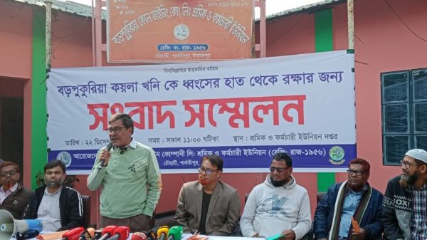 বড়পুকুরিয়া খনির কয়লা খোলাবাজারে বিক্রির দাবিতে সংবাদ সম্মেলন